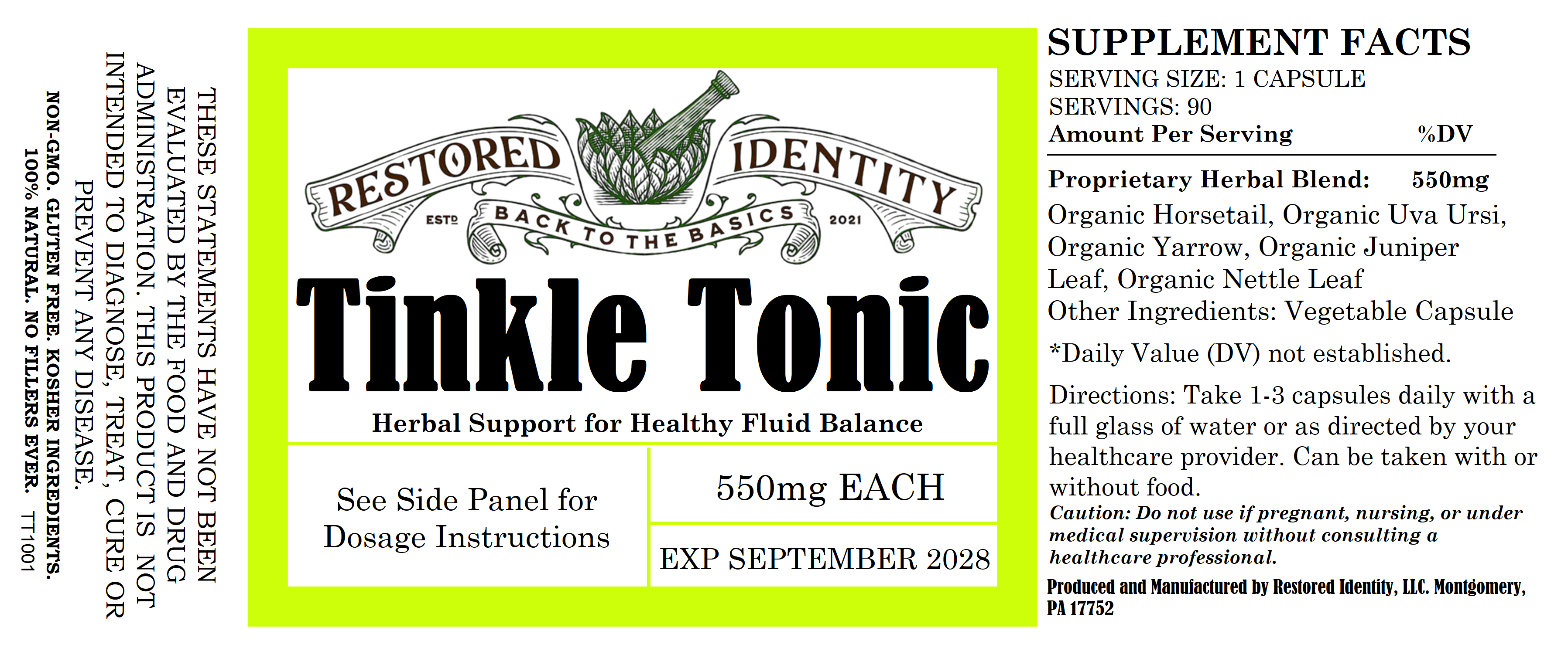 Tinkle Tonic is a gentle, all-natural herbal blend designed to support the body’s natural elimination processes and help maintain urinary tract balance.*